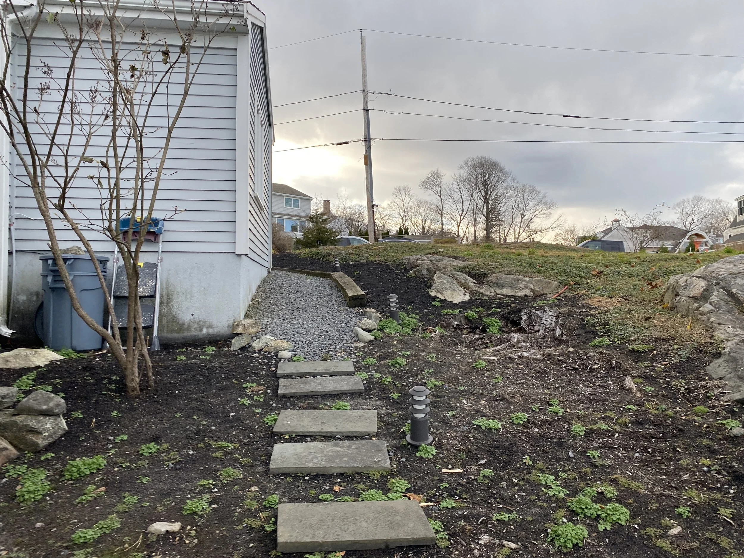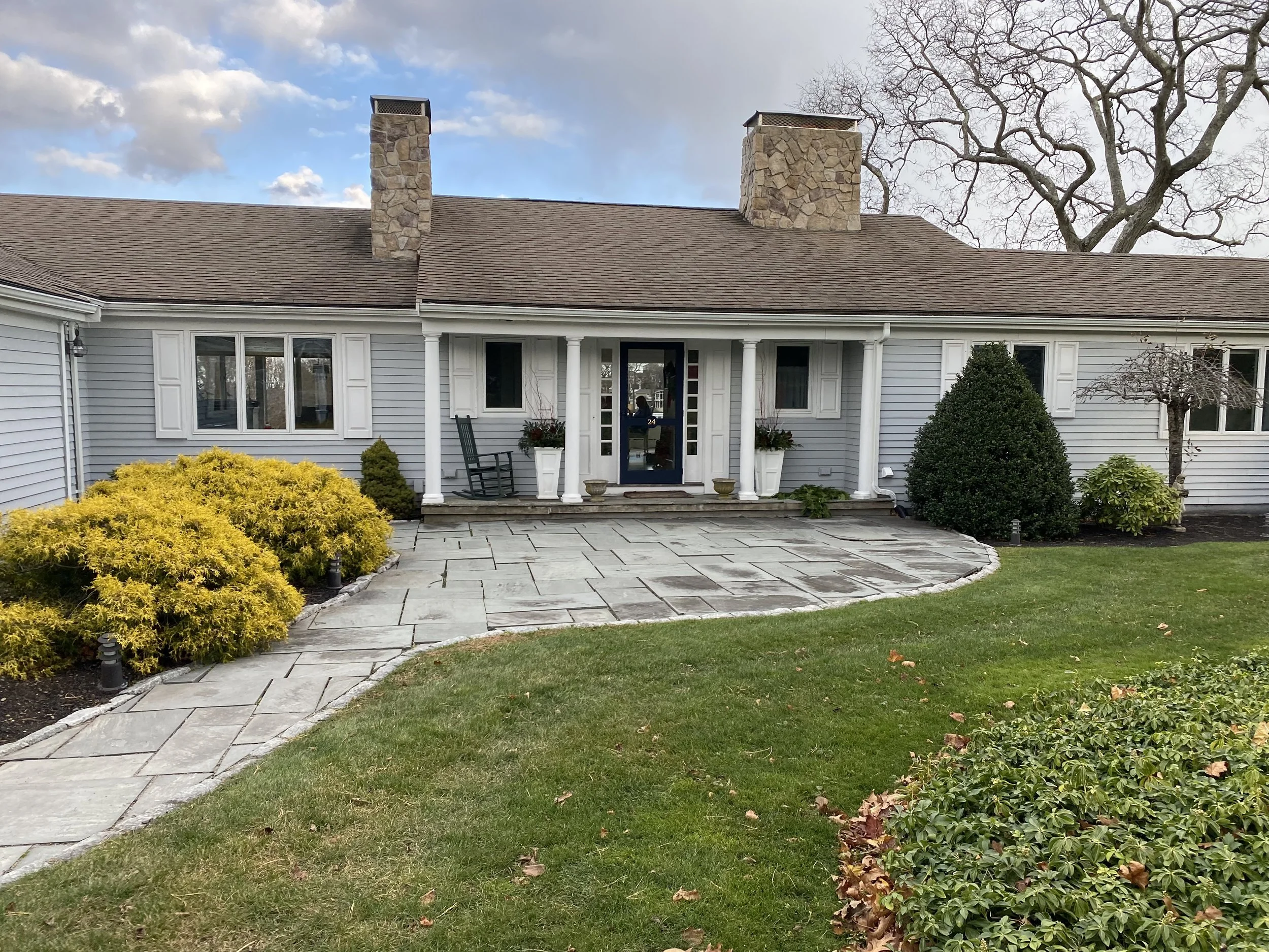 It was such an honor to work with this family on their amazing property, after having done a project with them nearly 20 years prior. This unassuming home sits on a stunning piece of shoreline on Little Harbor in Cohasset, which had lost its natural character to invasive plants. Working closely with the conservation commission, we rehabilitated the coastal bank and added layers of native plants around the property. Two decks were added to the back of the house for taking in the beautiful views, and the front entrance was given a charming courtyard with a pergola and patio sitting area. The homeowners welcomed suggestions for updates to the house, including house and roof color, and simplification to design elements which created a more modern aesthetic to the home. A new stairway down to the water’s edge offered access with little habitat disturbance. Their patience and commitment to the lengthy coastal bank restoration process can set a new standard in their coastal community.