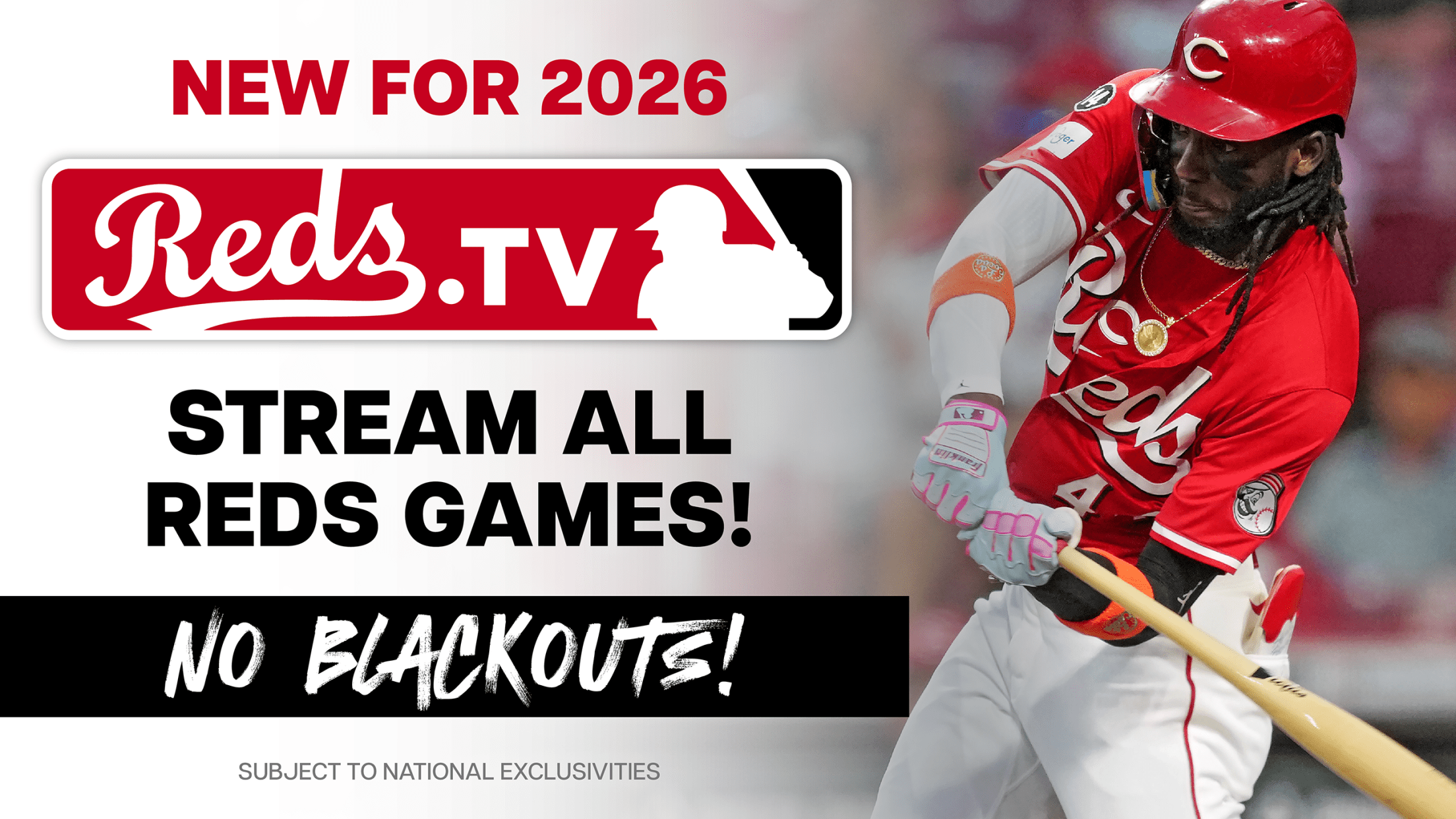 Fans in the Reds home TV territory can watch all locally distributed Reds games with no blackouts on REDS.TV!